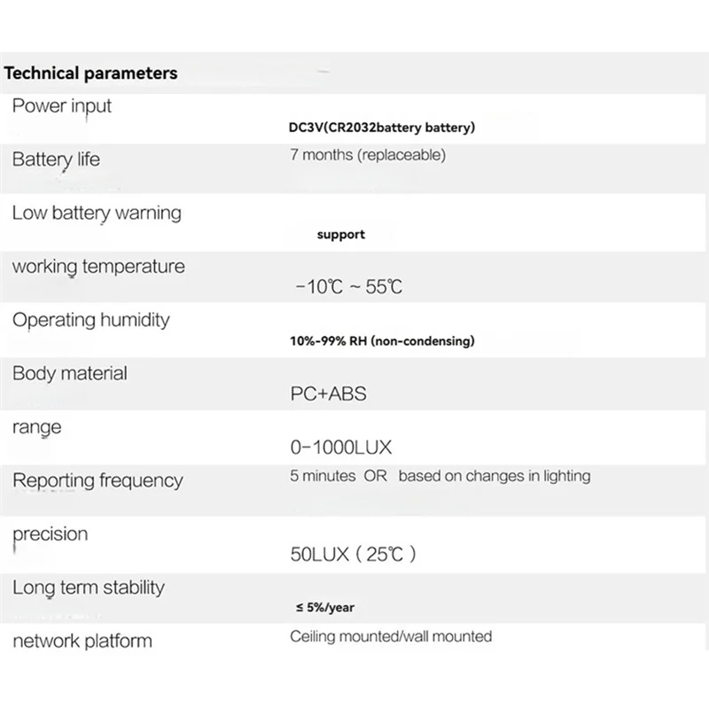 Linkage with smart bulb Reading in dim light is an unhealthy eye habit, and the linkage of light sensors and smart light bulbs will be the best partner to ensure eye safety Smart linkage to build ideal living space Are you still troubled by the tedious task of turning on the lights manually, or opening and closing the curtains? Light sensors links up with your smart devices to help you solve home problems. Intelligentize whole house Real-time monitoring of the light intensity received by the home. When it gets dark, it will turn on smart lights for you to illuminate the path under your feet and ensure your safety. A bridge connecting Zigbee device informationThe gateway can receive signals from ZigBee devices.Upload it to the server over a Wi-Fi network.Not only can you see real-time status on the app side,but you can also receive notification pushes. It also provides remote control and intelligent connectivity. Stick anywhere you need With adhesive tape on the back, the smart light sensor can be sticked to anywhere you need.