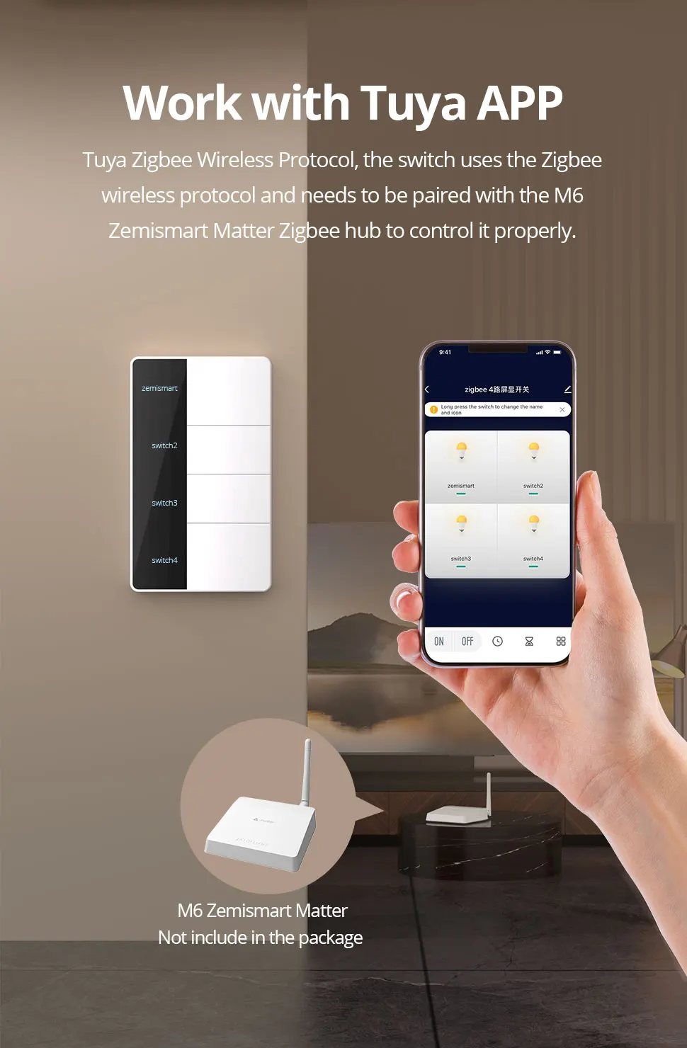 - APP Control: Works with Tuya and Smart Life APP via Tuya Zigbee hub. Support Homekit/Smartthings/Google Home/Home Assistant control via M6 Hub.