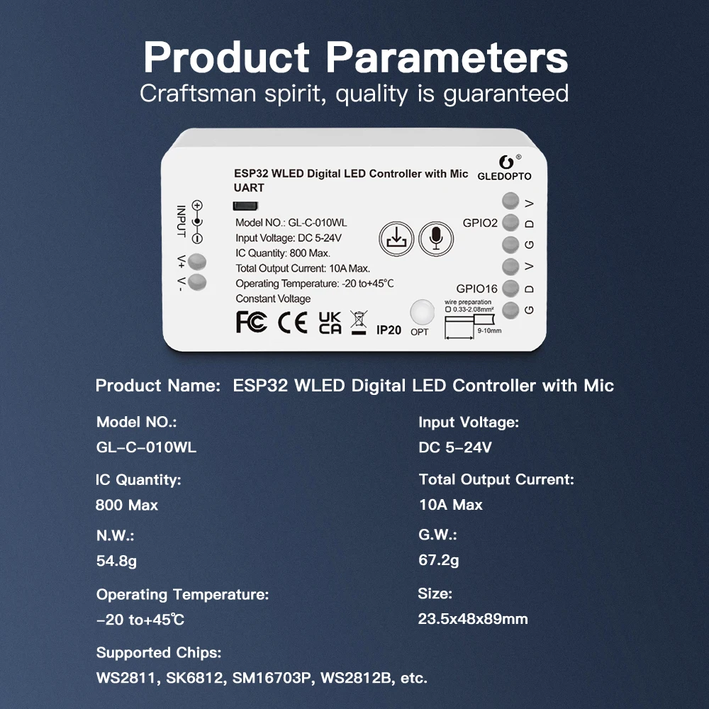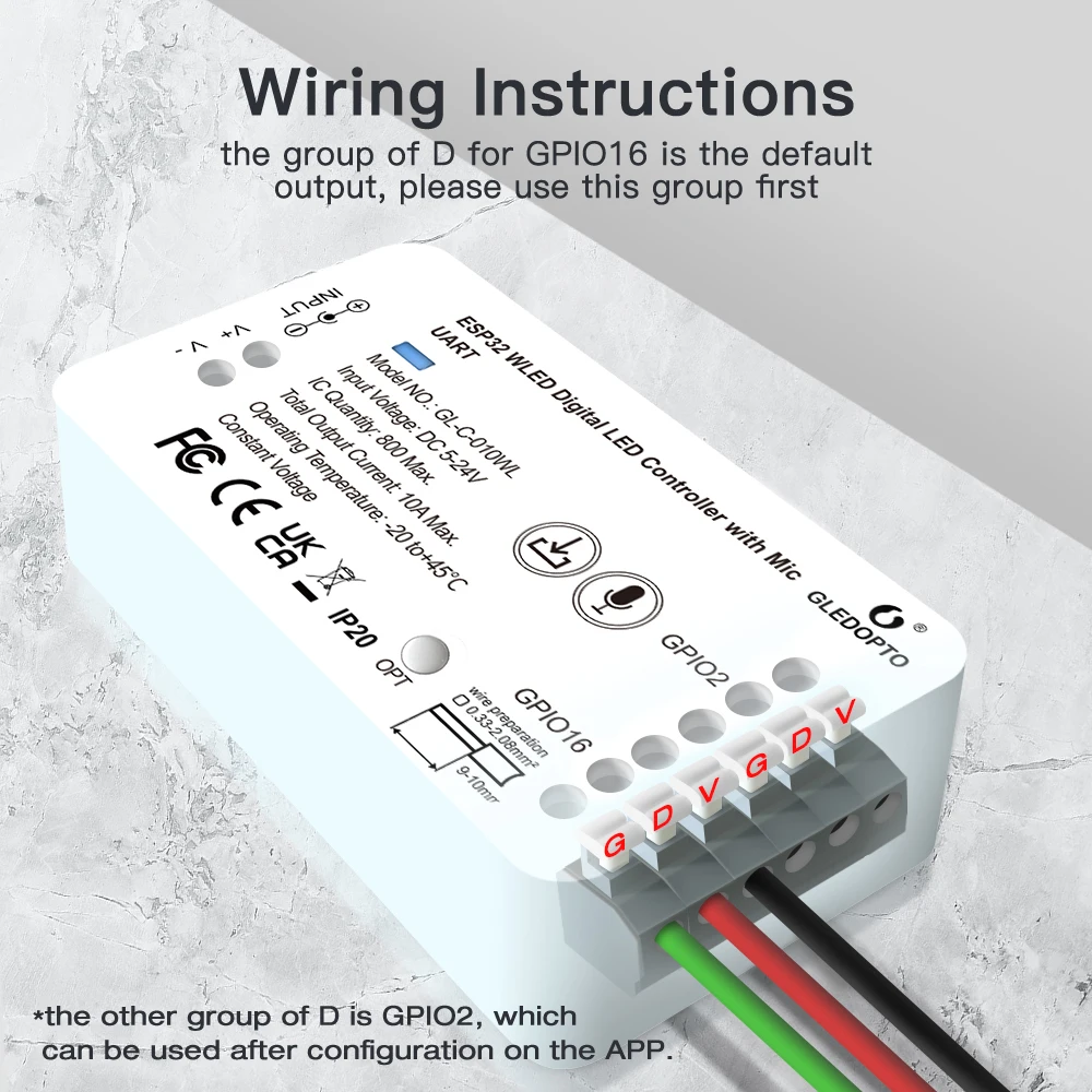 🌟DIY Lighting: The GLEDOPTO ESP32 WLED light strip controller supports customized lighting effects. You can create unique lighting effects by adjusting color, brightness, speed, and other parameters, making your space more personalized.
