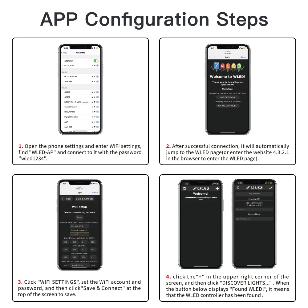 🌟WiFi Network Control: The GLEDOPTO ESP32 WLED light strip controller can be connected through WiFi and controlled directly using the WLED app, without the need for an additional gateway device. This means you can control your light strip anytime, anywhere using your smartphone or tablet, making it convenient and easy.