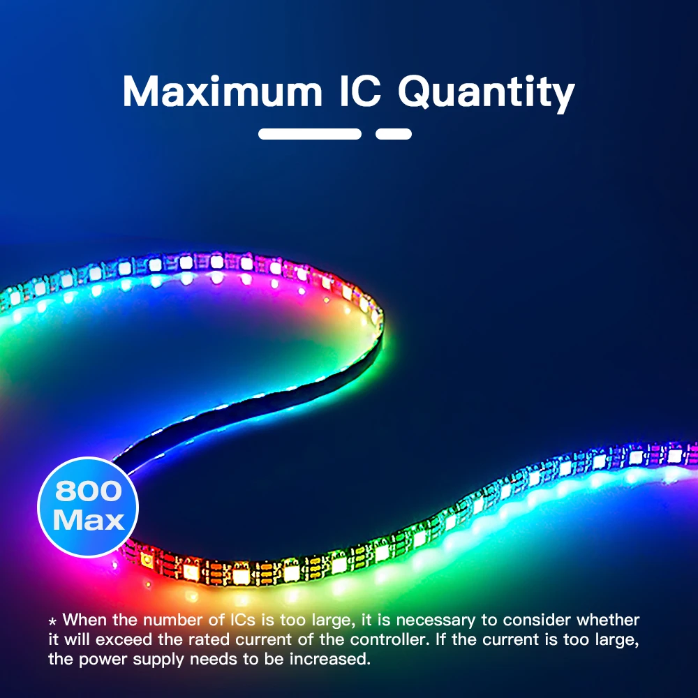 🌟Multiple Light Strip Compatibility: This controller is compatible with various types of light strips, such as WS2811, WS2812, SK6812, TM1814, WS2813, WS2815, and more. Regardless of what type of light strip you have, it can easily be paired with this controller.