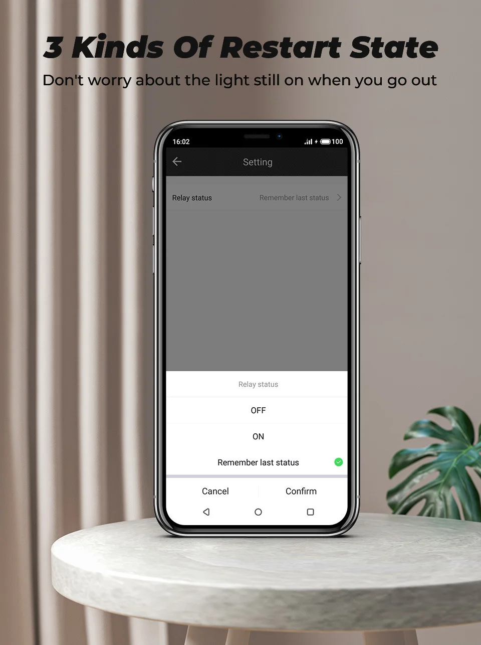 ★State memory.--Unexpected power outage? It doesn't matter, turn on the state memory function, after the power is restored, it can automatically restore to the state before the power failure