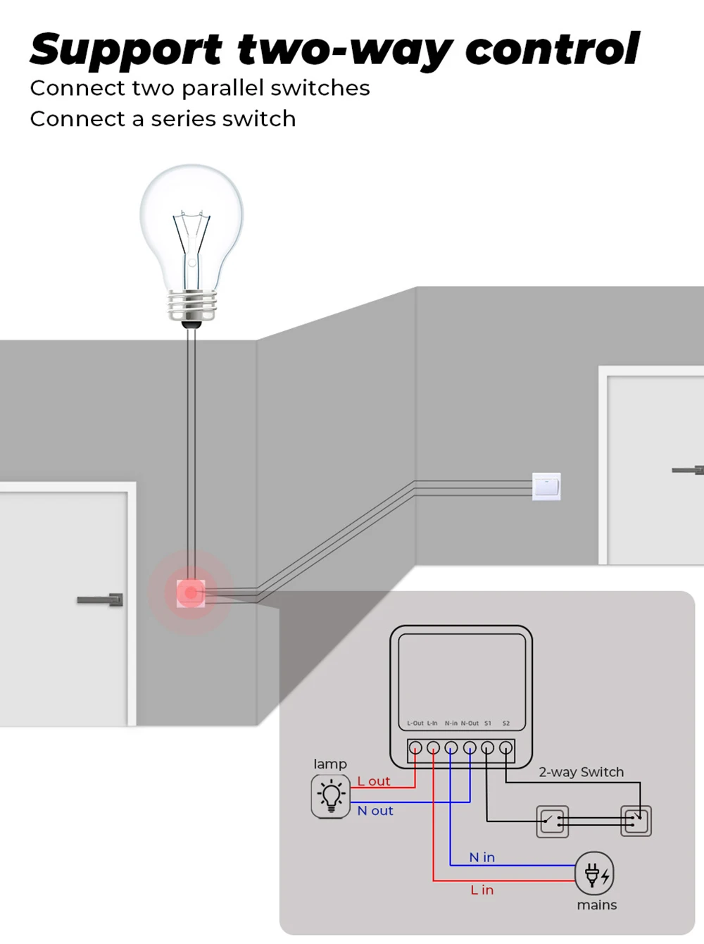 ★Three wiring methods.--Support 2-way/1-way/non switch, there is always one for you