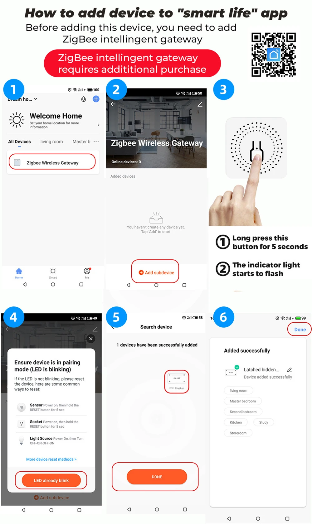 Note: Zigbee mini switch needs to be used with zigbee gateway
