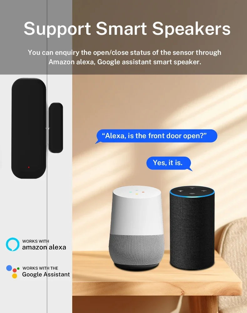 1. The battery is not included in the package. Please use LR03-1.5V alkaline batteries. 2. The product is not waterproof, Not suitable for outdoor use. 3. Zigbee Version required Zigbee Hub to work together.