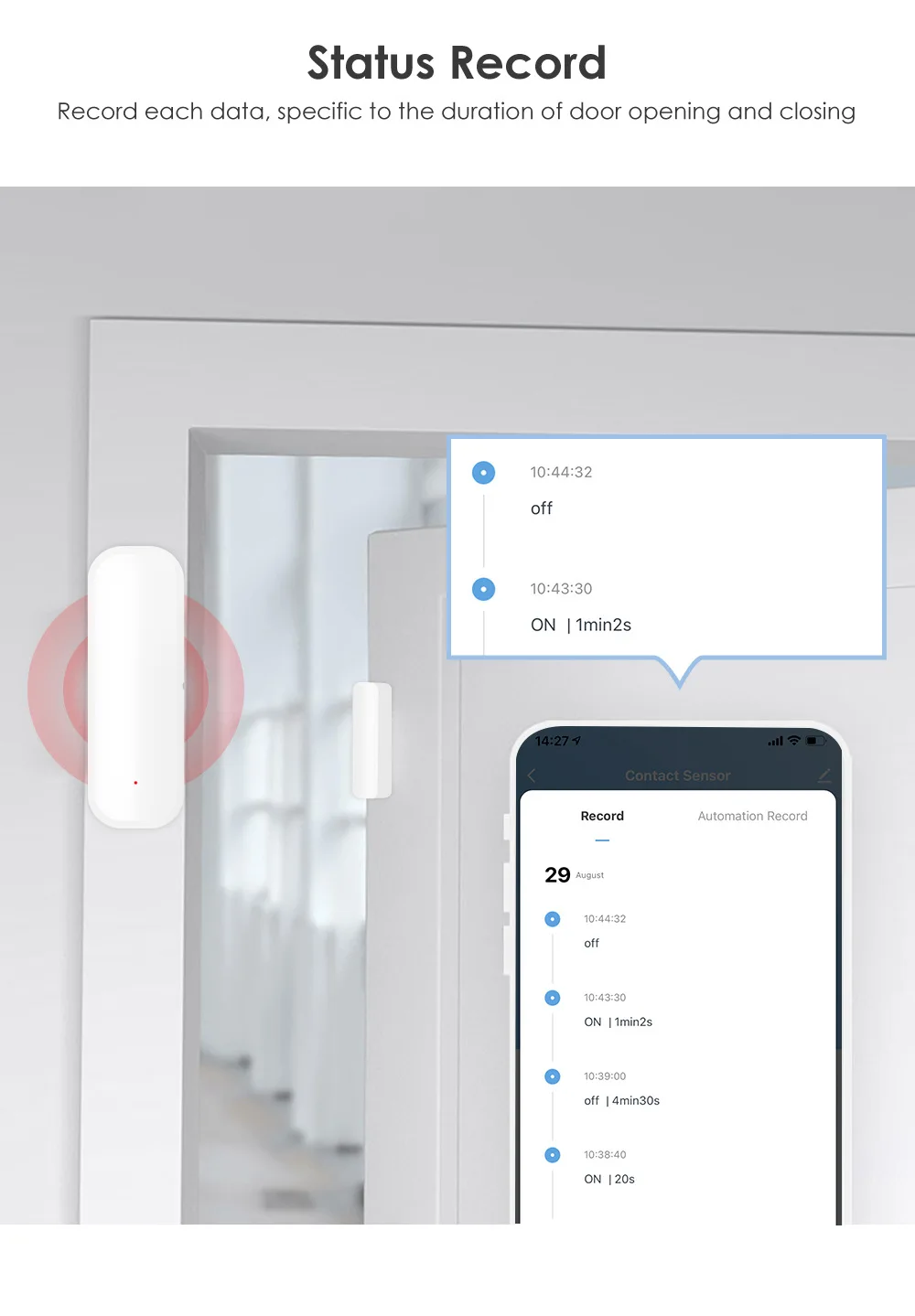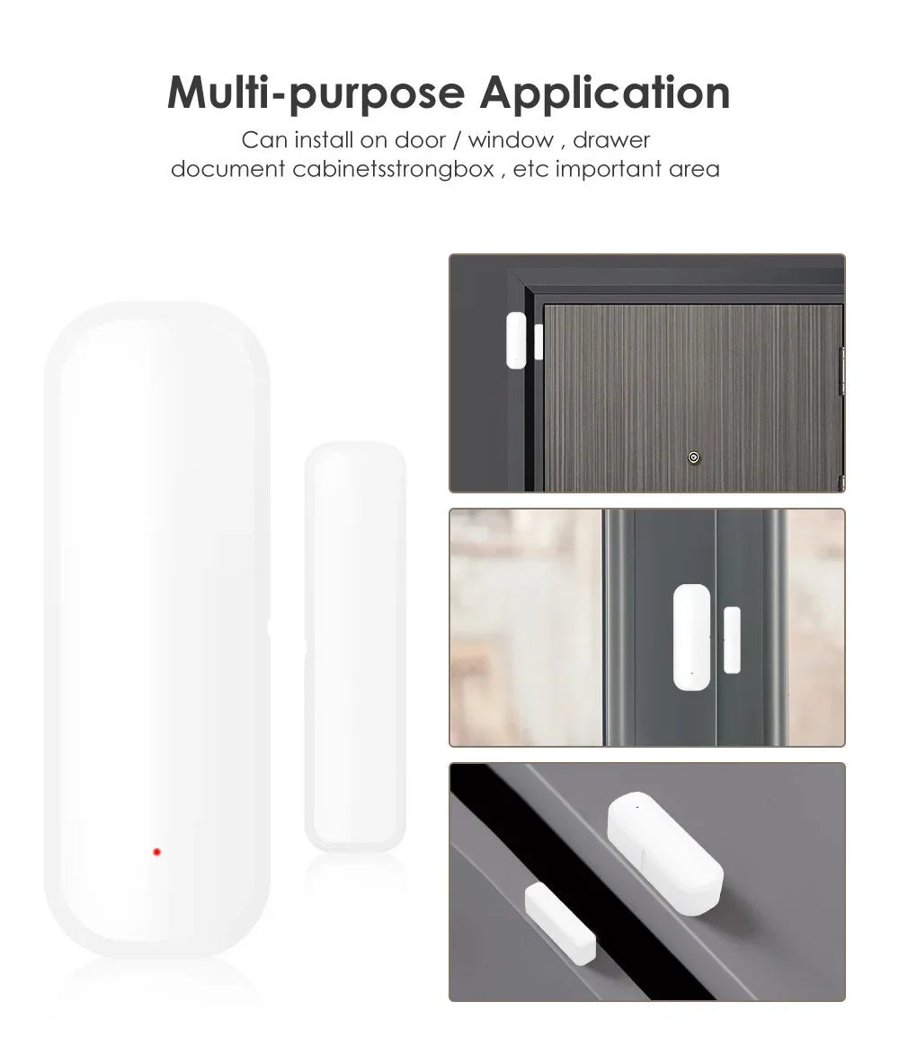 【Detect door/window status 】 When the door/window is opened or closed,the device triggered and push notification to the phone. 【Linked alarm with more sensors】 Set up the scene: away from home mode, if someone breaks in, the the device triggered and push notification to the phone., and the IP camera (not included) will shoot the video. When someone opens the door, the light turns on automatically. 【APP Remote Control 】 Whenever and wherever you are,once Door/Window Sensor detects external objects or animals, you will receive a notification by smart phone. Keep your house safe all the time.What you need to do is to keep your sensor with ZigBee hub connected. 【Wide Applications】 Apply the smart door/window sensor to different scenes,your bedroom,garage,bathroom,garden and anywhere you like,keeping your whole house away from danger with a linkage of the smart door/window sensor,together with various zigbee sensor with one zigbee hub required only. Easy to integrate into various environments. 【Easy to install】 Small size,easy to install Adhesive installation,can be flexibly placed in various doors, windows,drawers,etc,without destroying the appearance and structure of the original furniture