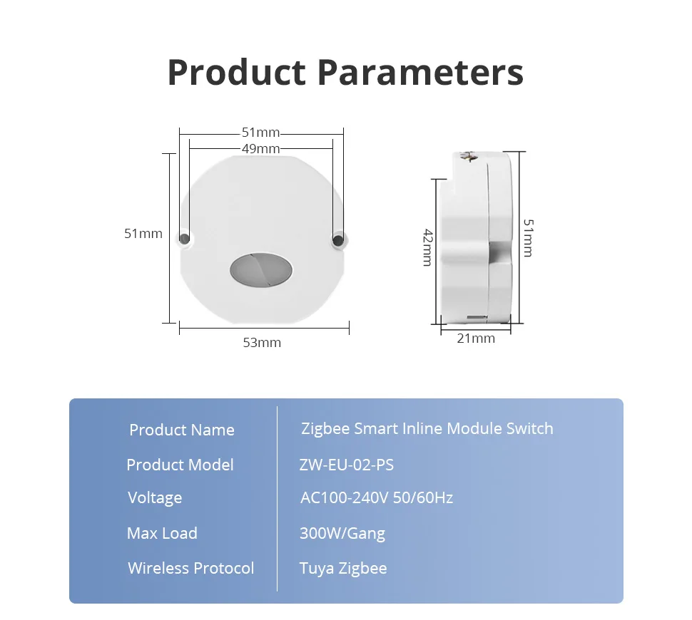 Zigbee 2 Gang Smart Inline Module Mini Light Switch with Power Statistics Function Work with Tuya Smart Life App