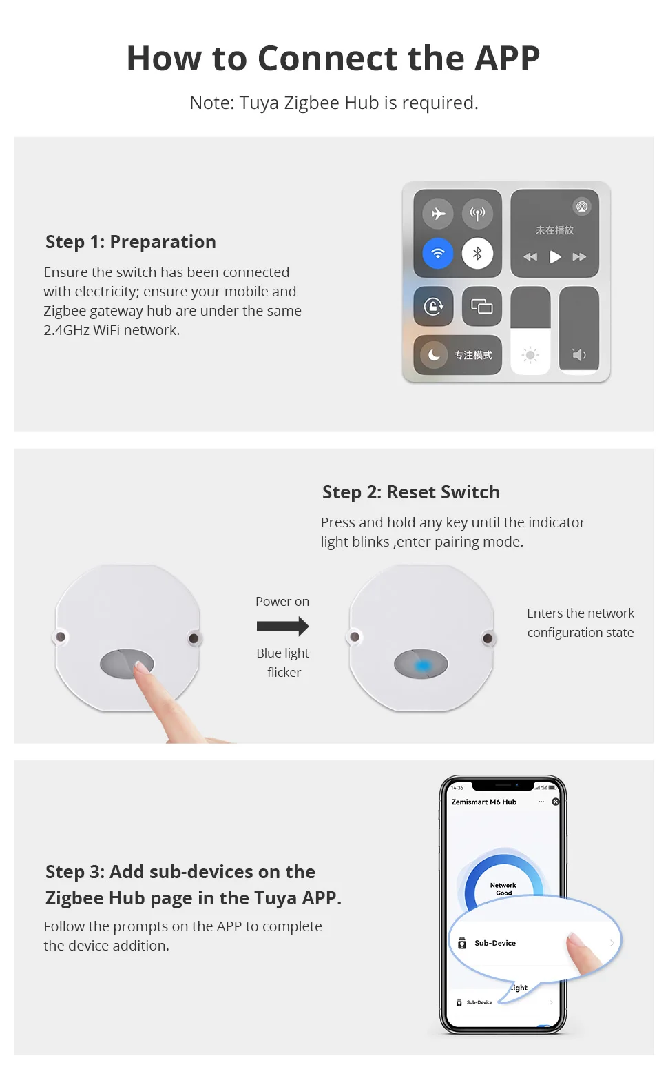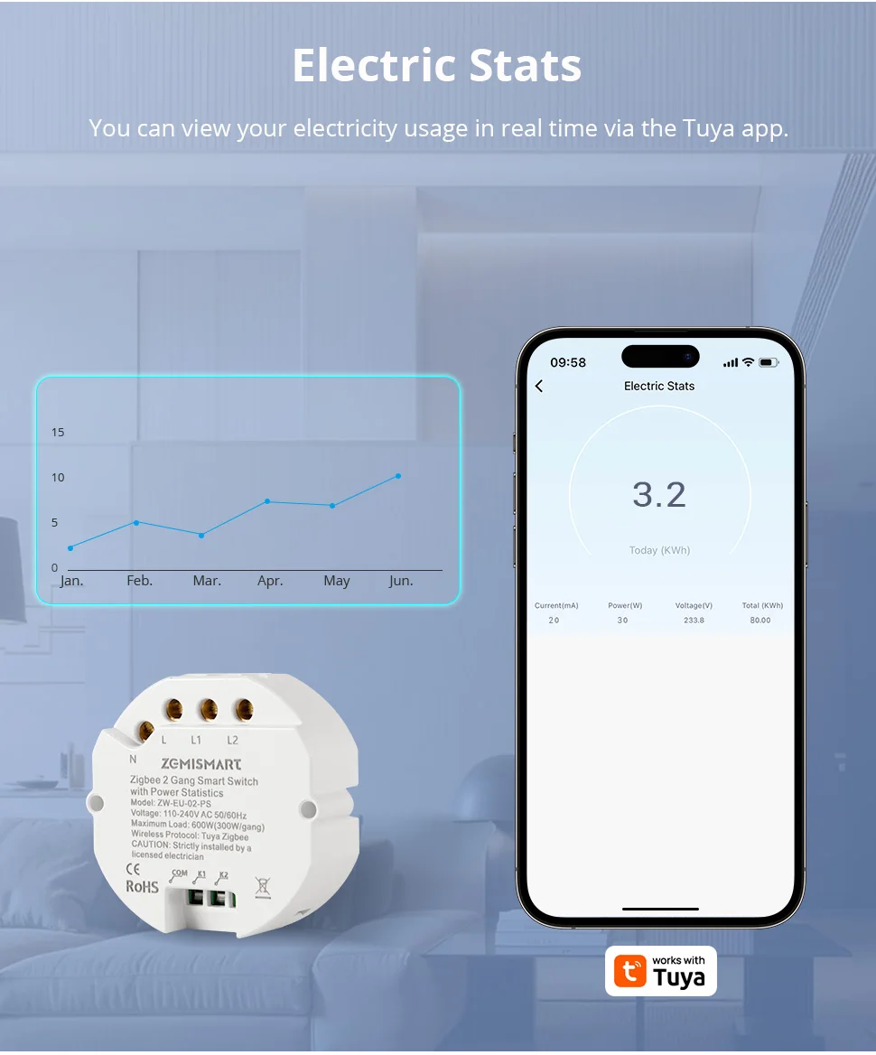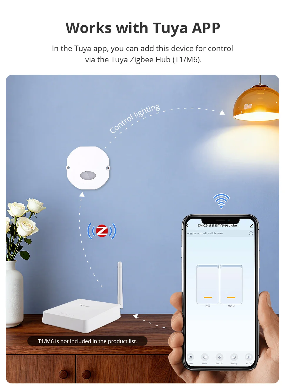 - Tuya Zigbee hub is necessary if you would like to control the switch via app or voice. -With Power Statistics Function: you can check the total electricity usage in the Tuya APP, like current, power, voltage.-Timer Control: you can set up a timer in the app. so that it can work automatically.-Voice Control: Support voice control via Alexa and Google Home commands.-Relay Status: in Tuya app, see the status at a glance, and remotely turn it off with one tap, no need running back and forth.