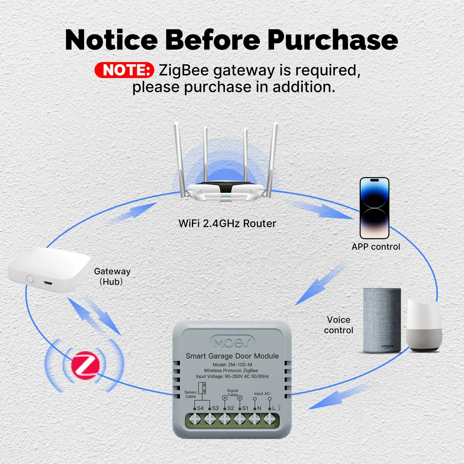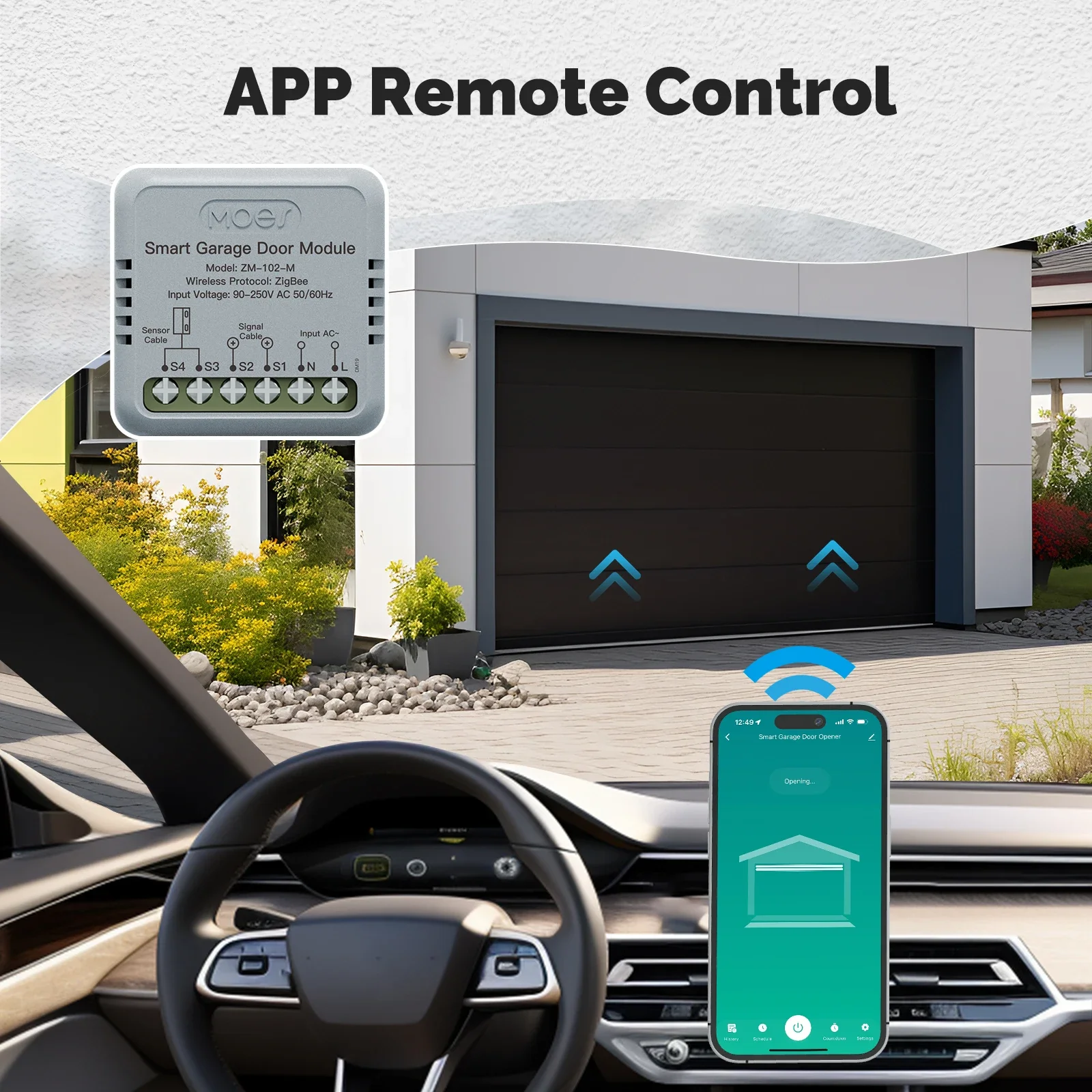 MOES Zigbee Garage Door Controller Module, Works with Tuya/Smart Life, Alexa & Google Home Voice Control, Smart App Remote