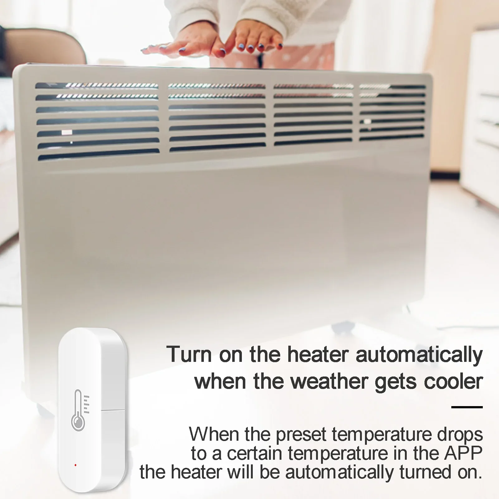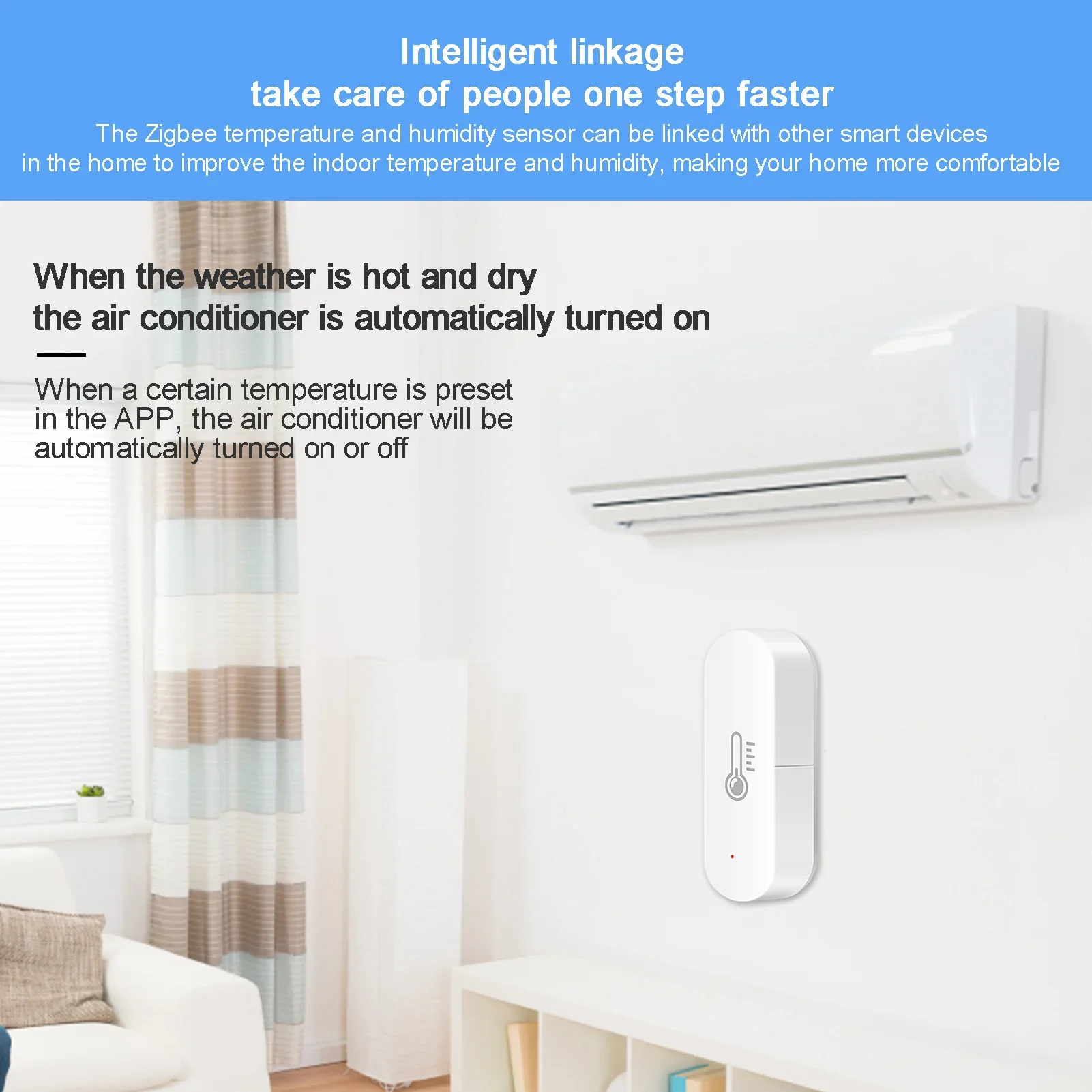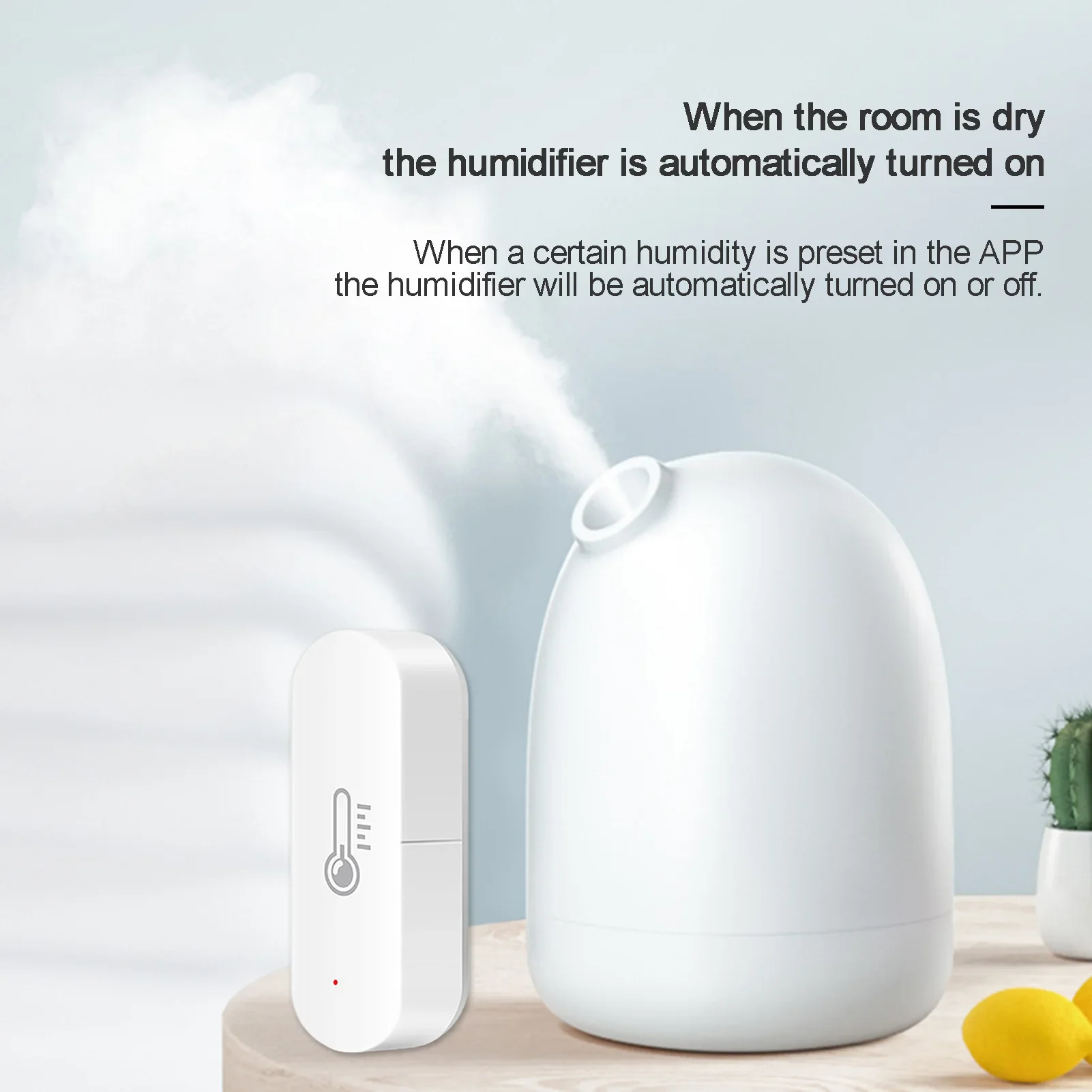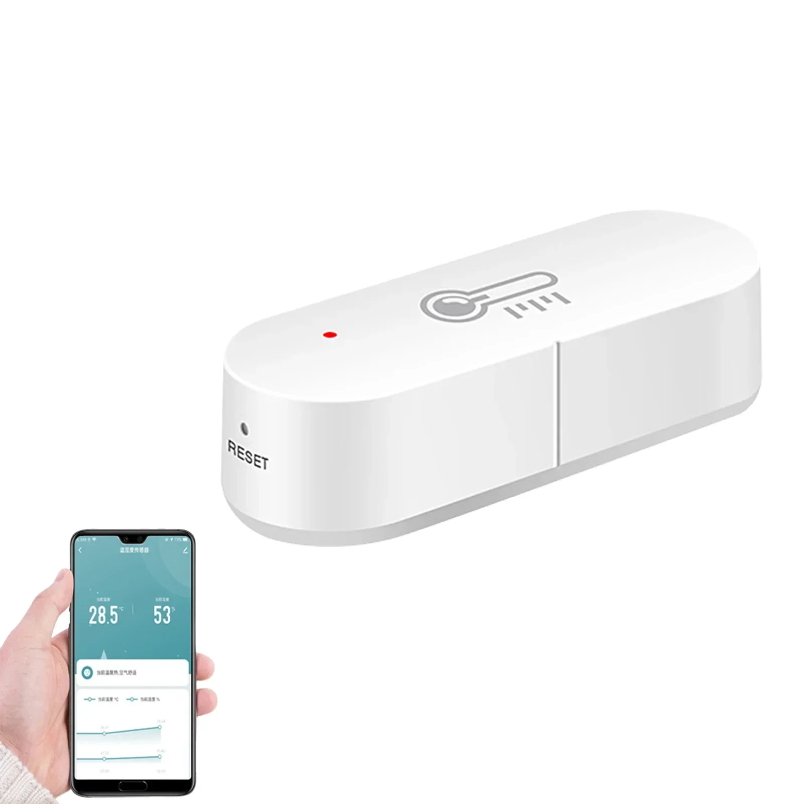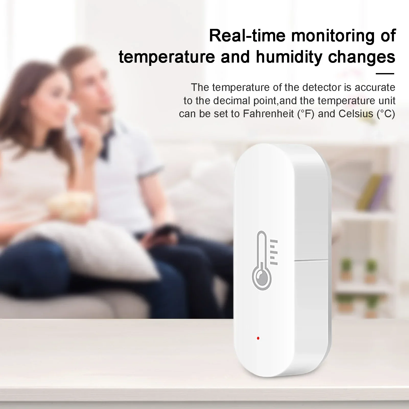 Bullet Points: 1、Temperature and Humidity Compensation: Added temperature compensation and smart scenes to connect to your air conditioner and humidifier to provide the most comfortable temperature and humidity for your house. 2、Real-Time Information Update: Through the Smart lives and Tuya APP, you can know the changes in temperature and humidity anytime and anywhere, and you can adjust the appropriate temperature for the house by viewing the historical records. 3、Low Battery Reminder: The low voltage monitoring reminder function is designed in the App to supply power to your room thermometer humidity sensor in real-time. 4、Wide Range of Uses: Our room thermometer humidity sensor can be used for a house, baby room, greenhouse, wine room, incubator, and humidor. It is widely used. 5、After-Sales Service: We provide high-quality products and great service. If you have any questions, you can contact us and we will provide a variety of solutions for you to choose from. Description: Our smart temperature humidity sensor can add temperature compensation and smart scenes, which can provide the most comfortable temperature and humidity for your house. It is suitable for a house, baby room, greenhouse, wine room, incubator, and humidor. Specification: Name: Wireless Temperature and Humidity Sensor Scope of application: home, studio, school, factory Material: ABS Temperature measurement range: -10-55 (℃) Humidity measurement range: 0-99 (RH) Temperature measurement accuracy: 1 (℃) Humidity measurement accuracy: ±5 (RH) Temperature measurement error: 1 (℃) Humidity measurement error: 5-8 (RH) Use battery: 2* AAA dry battery Packing List: 1*sensor (without battery) 1*instruction Notes: 1. Due to the different display and lighting effects, the actual color of the product may be slightly different from the color shown in the picture. 2. Due to manual measurement, please allow a measurement deviation of 1-3cm.